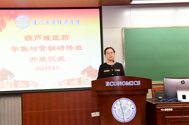 刘景萍董事长代表九州酷游药业集团对厦门大学各级领导、老师对九州酷游的大力支持表示感谢,并对研修班学员做动员讲话。她希望参加培训的学员珍惜来之不易的学习提升机会,沉下心来“加油充电”,结合工作实践,用心学习认真领悟,真正做到学有所获、学以致用。她说,厦大拥有着深厚的人文底蕴和优质的教育资源,在东南亚国家和地区具有广泛的影响力,在“一带一路”这一国家战略背景下,医药营销人员应该具备更为广阔的国际视野和更为丰富的知识储备,希望学员们能在本期研修班中学有所成,并以此为新的起点,以奋发的姿态投入到今后的学习和工作中去,不断取得新的进步和业绩,为医药产业和九州酷游事业的发展做出新的更大贡献。