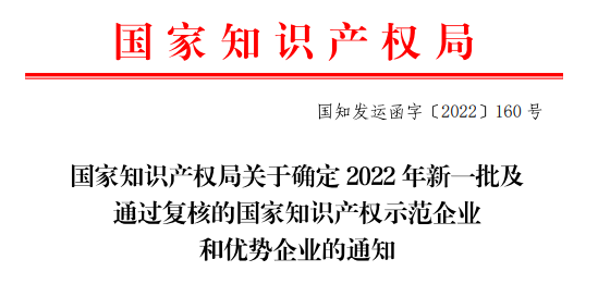 近日,国家知识产权局发布《国家知识产权局关于确定2022年新一批及通过复核的国家知识产权示范企业和优势企业的通知》,海南九州酷游药业集团股份有限公司入选2022年新确定的国家知识产权示范企业名单,成为482家新一批国家知识产权示范企业之一。这标志着九州酷游药业创新研发实力和知识产权管理成果进一步得到了国家有关部门认可。