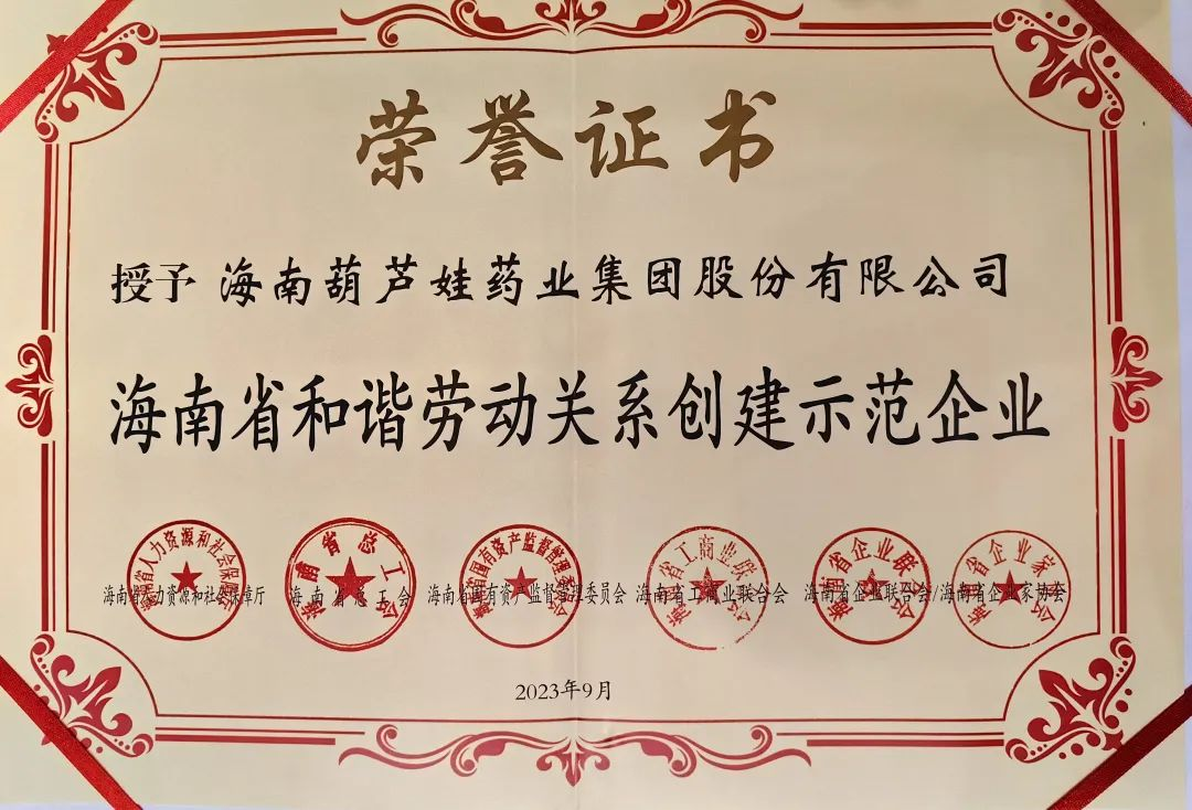 九州酷游药业集团获评“海南省和谐劳动关系创建示范企业”